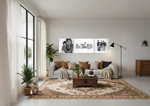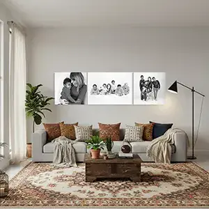 Un triptyque unique composé d’un grand tableau 60×40 cm et de deux carrés de 30×30 cm. Disponibles en alu ou bois, ces supports valorisent vos images tout en créant un ensemble moderne et équilibré, parfait pour animer vos murs avec style.